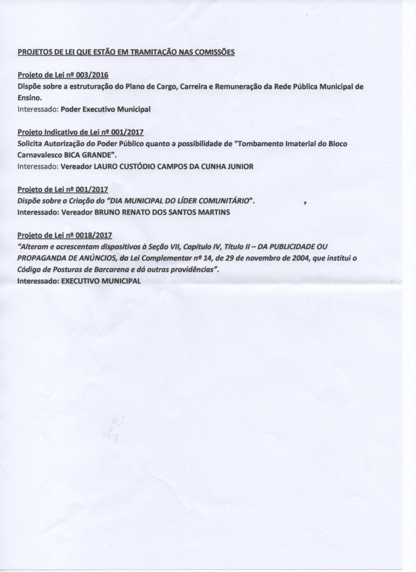 PROJETOS DE LEI EM TRAMITAÇÃO EM 2019 - Leia mais…